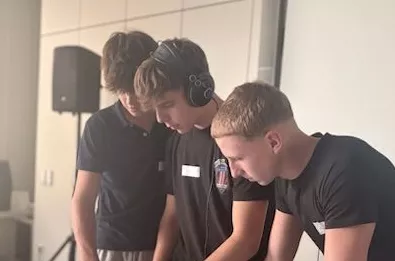 Am Freitag, den 26. September, nahmen die Schüler Tim Österle, Leon Merkel und Liam Oberbauer an einer spannenden Fortbildung an der Hochschule der Medien in Stuttgart teil. Die drei sind seit Jahren aktiv im SMV-Pausenradio und engagieren sich regelmäßig für musikalische Highlights auf dem oberen Pausenhof – jeden Freitag in der zweiten großen Pause.