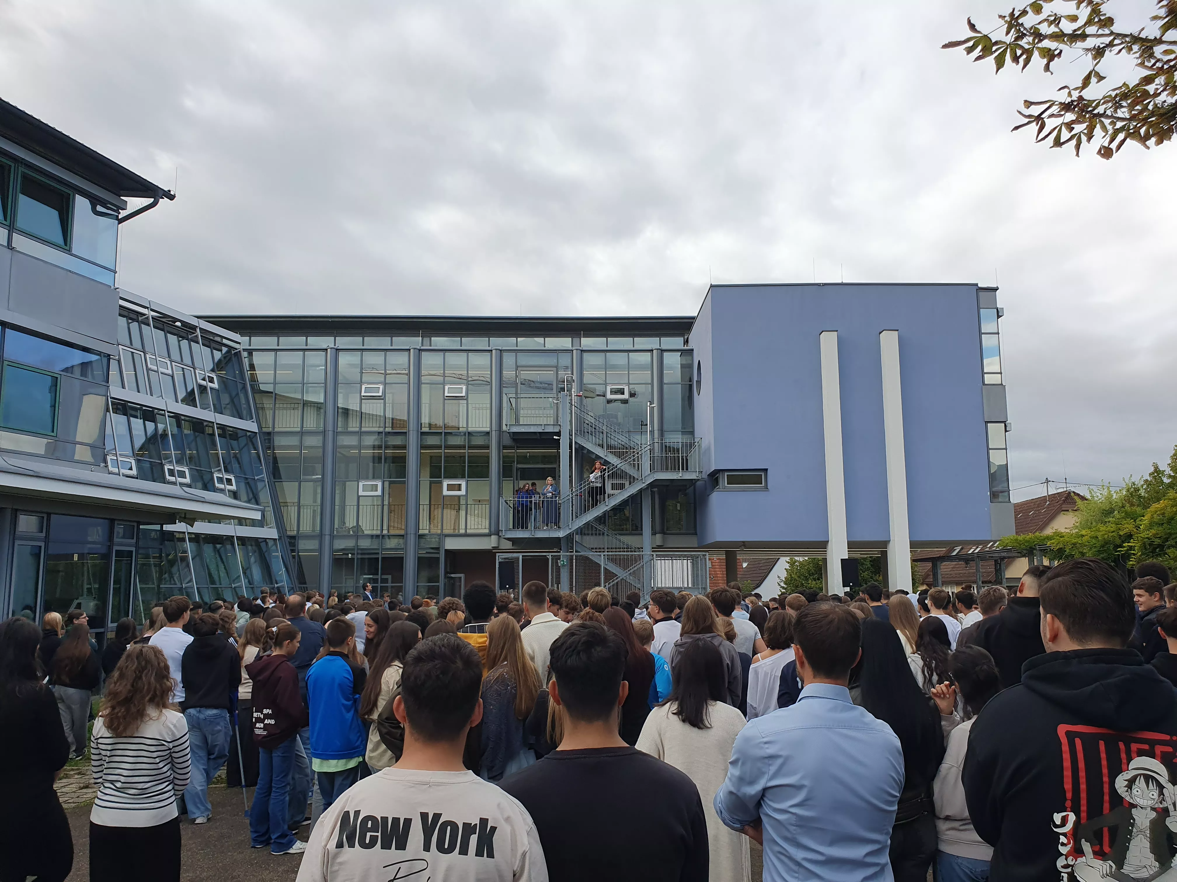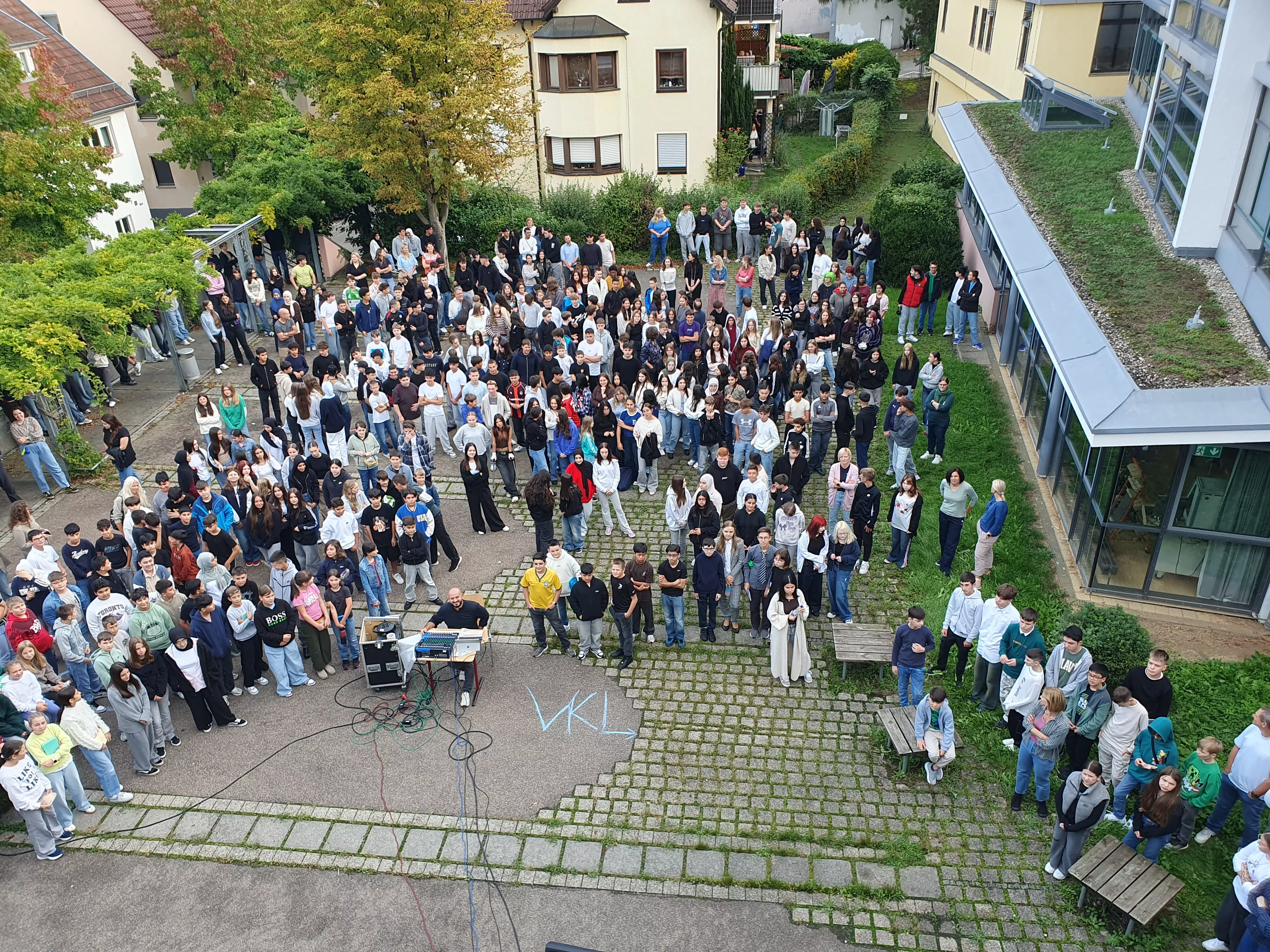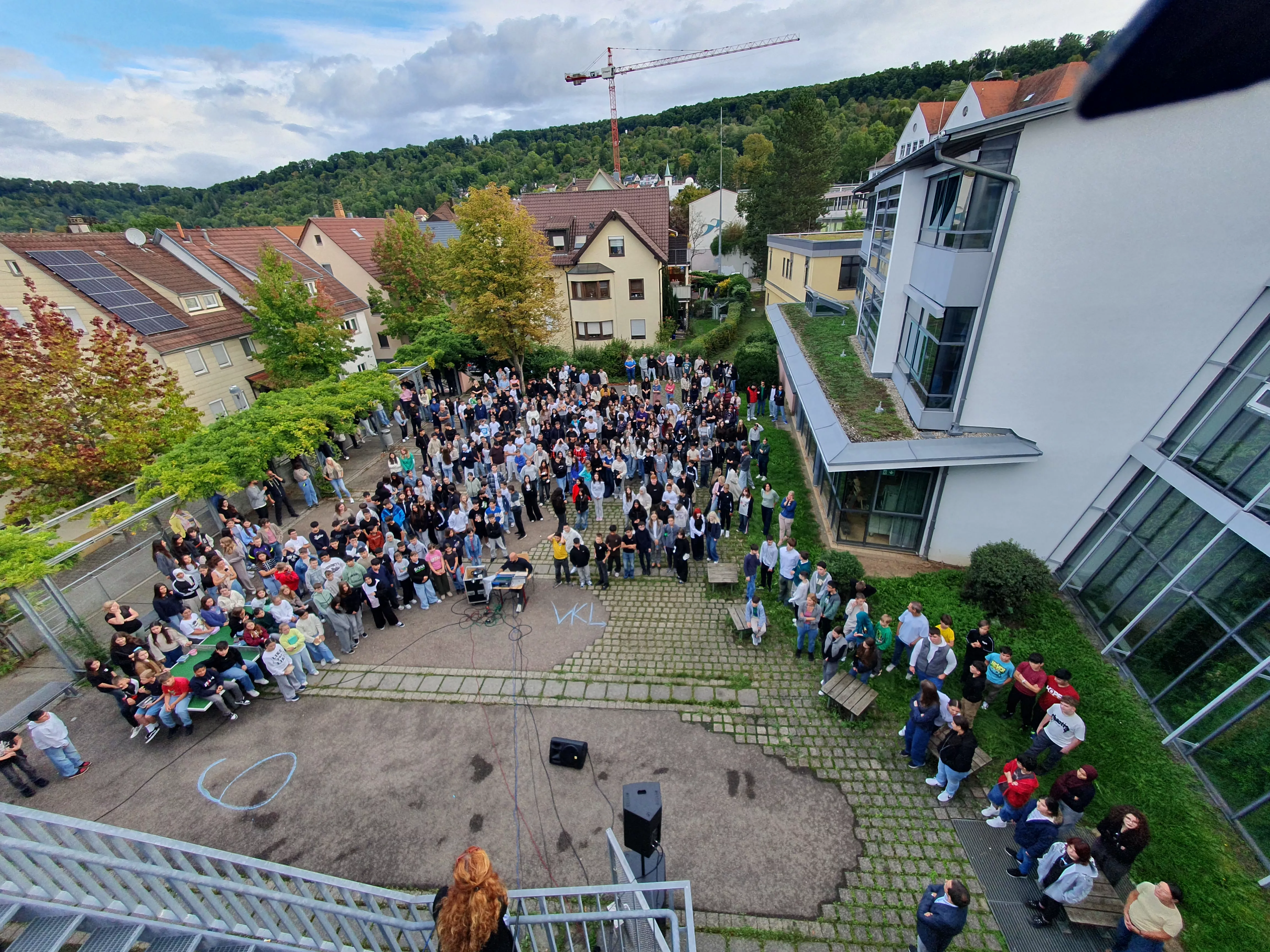 Mit einem feierlichen Auftakt startete die Neckar-Fils-Realschule Plochingen heute ins neue Schuljahr. Die Schulgemeinschaft versammelte sich am Vormittag auf dem Pausenhof, um den Schuljahresbeginn gemeinsam zu feiern.